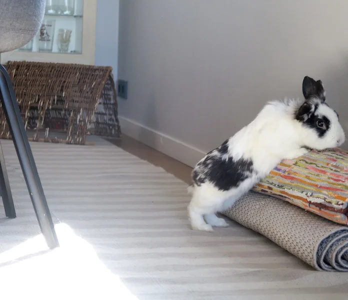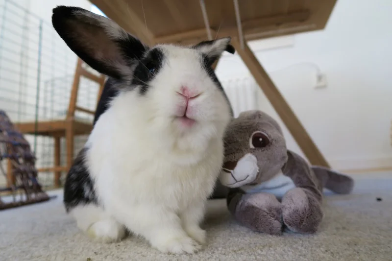 Vi var fosterforeldre for Jens noen uker, men nå bor han sammen med sin kjære Nelly i sitt nye adoptivhjem. De er frittgående i en etasje i huset, og har en fin base på stua. I en hvitmalt Hol har de dokasse med høyhekk, og utenfor har kaninene vann og ulike gnageleker. De har store tepper som de kan løpe på, og de elsker å ligge under spisebordet og holde utsikt over alt som skjer.