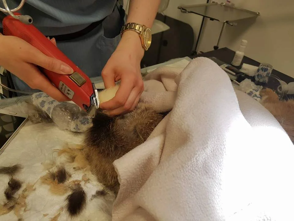 Grunnet tidligere dårlige boforhold hadde flere av kaninene urinskolding og smertefulle sammenfiltring av pels. Benjamin måtte barberes litt ekstra som følge av dette, men det var nok godt å få av.