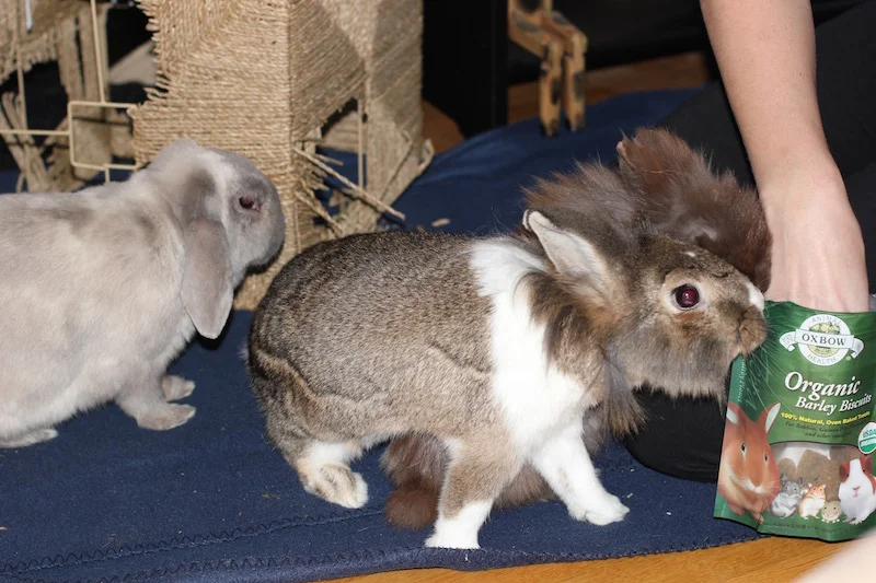 Erling får kjærlighet og godbiter fra mor sammen med sine to nye kaninkompiser.