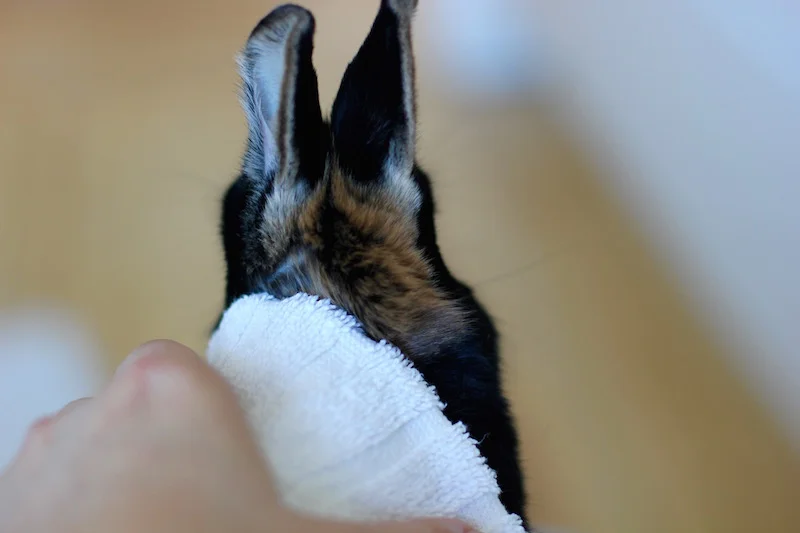 Man må naturligvis også ha god personlig hygiene. Vask deg på hendene etter å ha renset i dokasser, skiftet på høy eller klappet kaninen. Unngå også å ta i øynene etter å ha vært i kontakt med overnevnte.