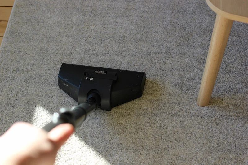 Vi har også brukt tekstilsprayen. Da sprayer vi den på sofaen og tepper og støvsuger normalt etter et par timer. Dette gjøres annenhver uke eller ved behov.