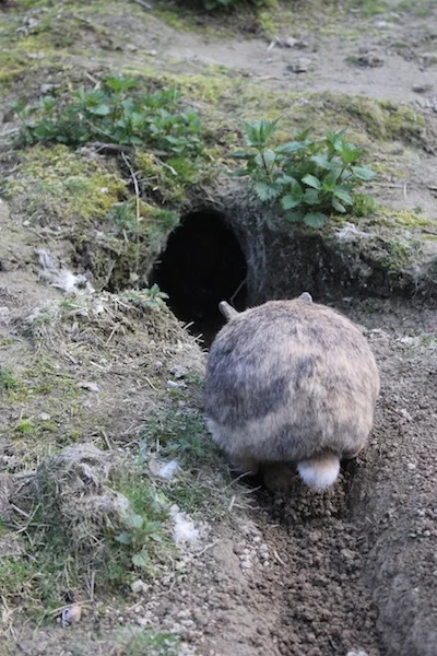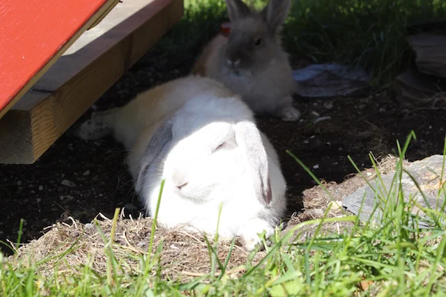 Ved normale nordiske sommertemperaturer har jeg verandadøra åpen og lar kaninene gå ut og inn som de vil. De velger da å gå inn for å hvile midt på dagen. Det er ikke så rart, da man vet at også villkaninene går ned i tempererte huler for å ha siesta på dagtid.