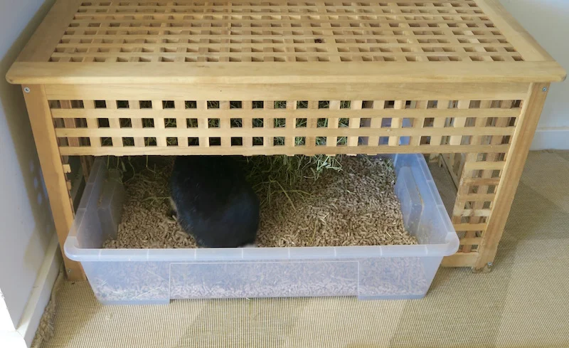 Vi med kaniner har ofte bordet Hol fra IKEA. Etter å ha laget et par innganger får vi lett fine sovehus eller stasjoner med plass for dokasse og høyhekk, noe som gjør livet med huskaniner ryddig og hyggelig.