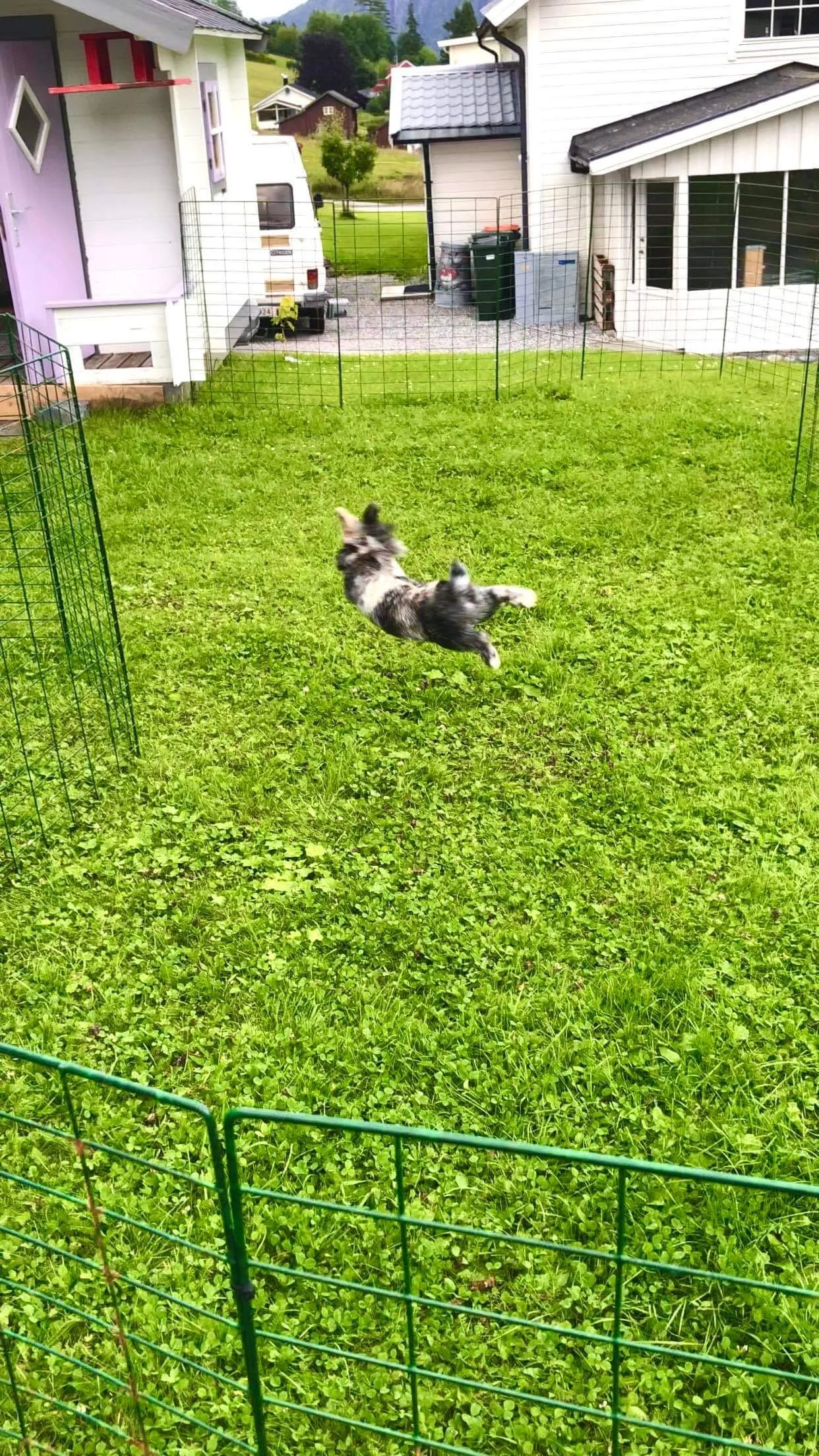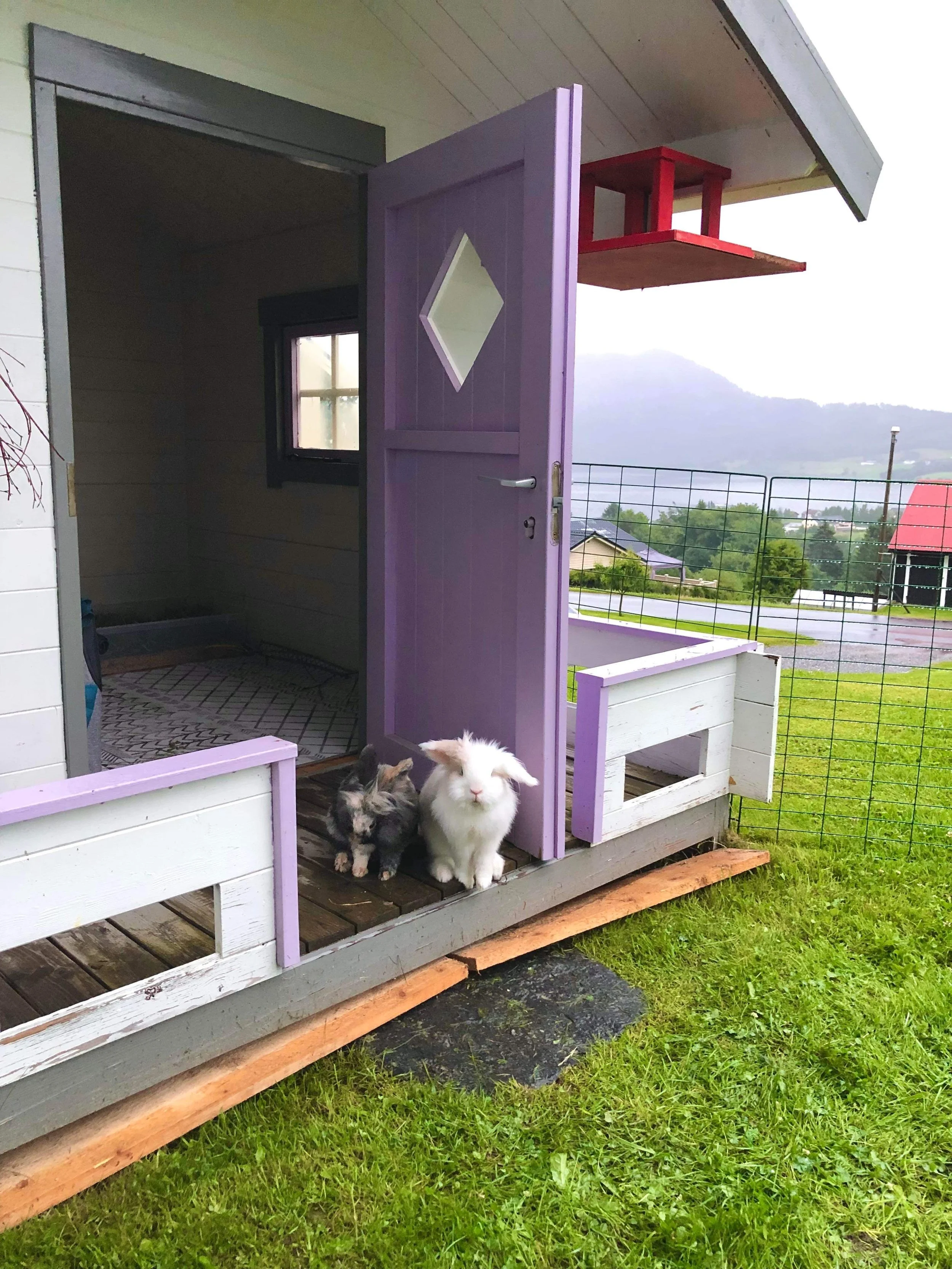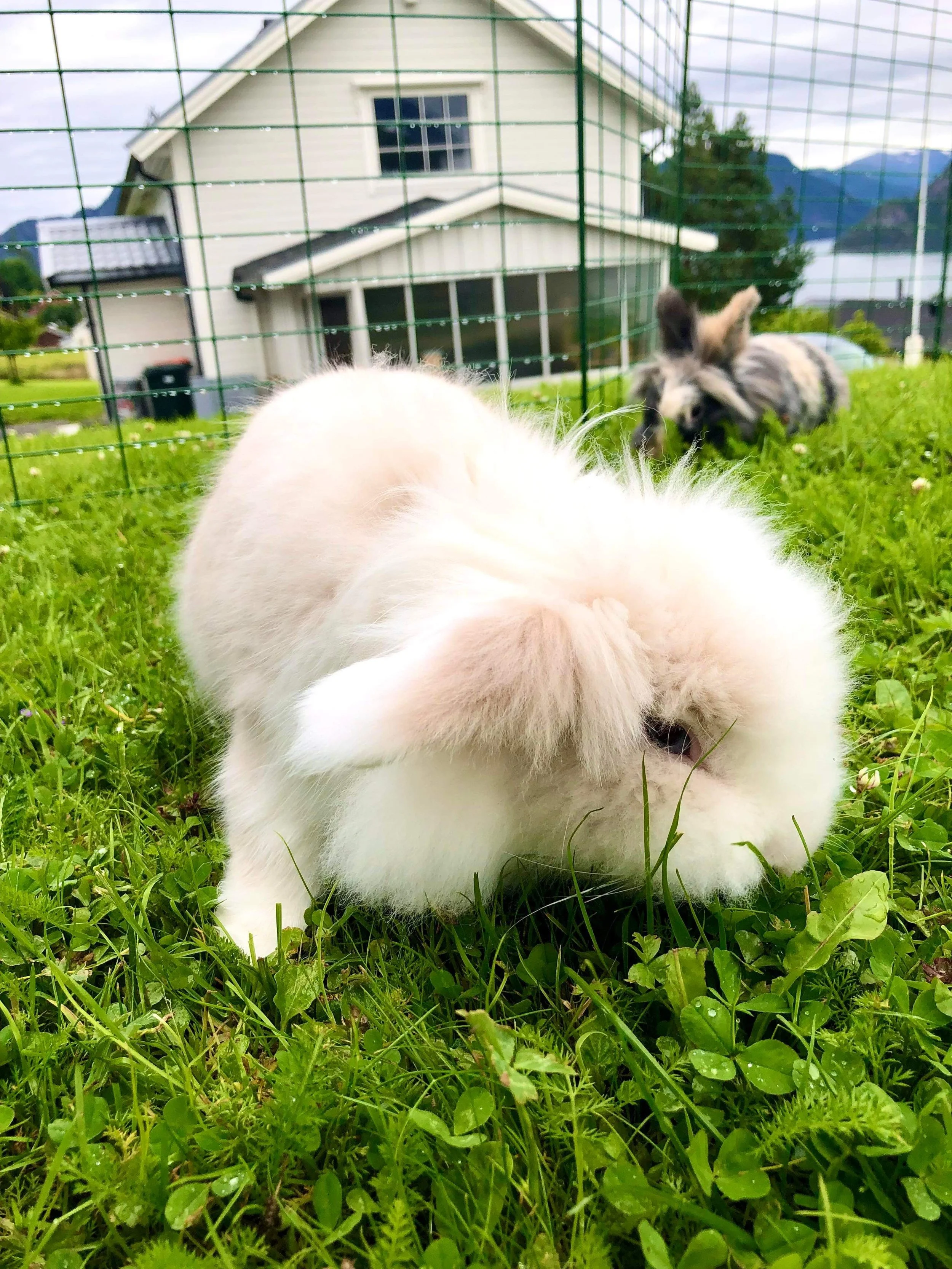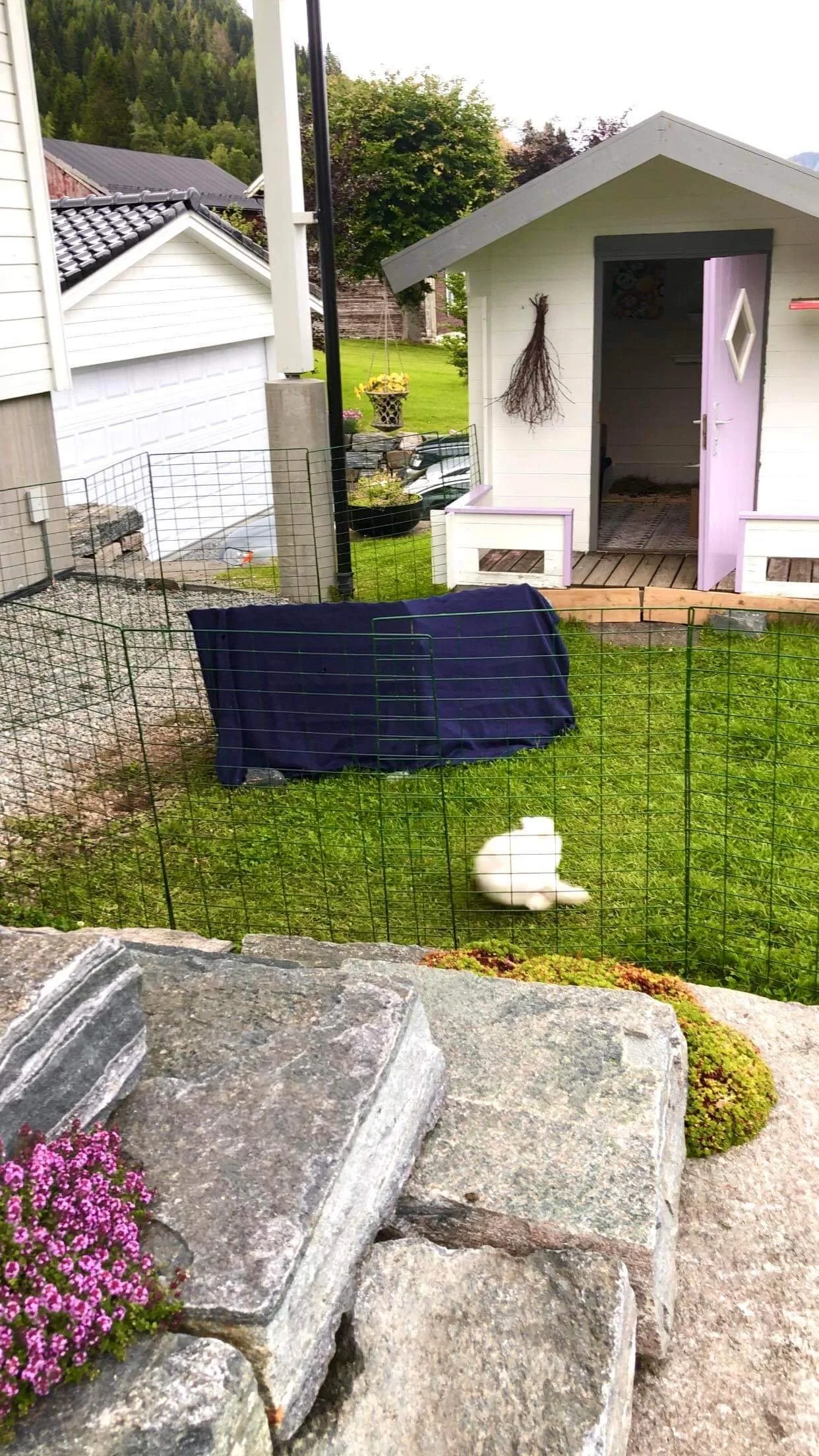 Det er kjekt å være her, og Charlie og jeg har fått testet å være ekte utekaniner! Hjemme sover vi i (under) en myk seng, og hopper rundt på myke og rene tepper. Vi slipper å få regn på pelsen, og vet omtrent ikke hva skitne labber er. Heldigvis er temperaturen fin så forskjellen er ikke stor til hva vi er vandt med, men jeg må si at jeg liker ferietilværelsen. Utelivet har gitt mersmak så jeg har sagt til mor at hun skal bygge meg ett uteparadis så fort vi får egen hage.