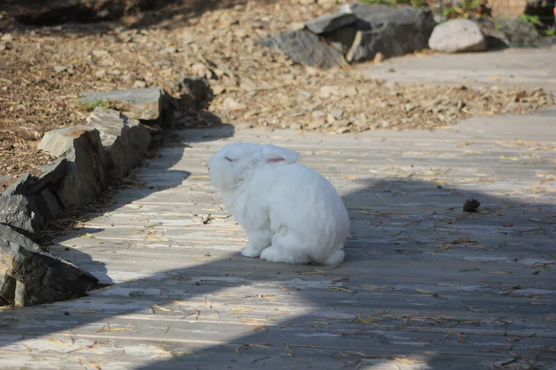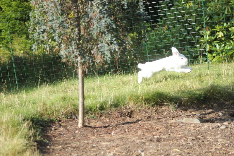 Her kan dere se en film av at jeg løper rundt i kaninbeddet i dag.